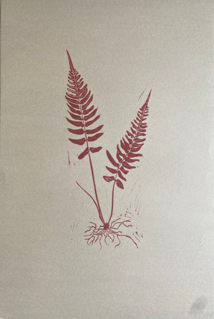 It is printed to order on beige pacon paper with linseed oil inks in tones of burgundy and rose and measures 45cm x 30cm.